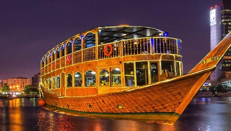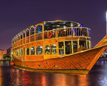 Relax on a traditional wooden dhow as you sail through Dubai Marina or the historic Dubai Creek. Includes a buffet dinner, music, and stunning views of the city skyline.